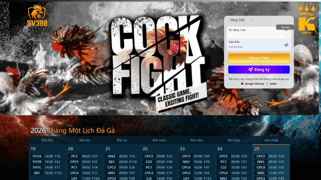 Trong danh mục sản phẩm của KINGBET, SV388 được triển khai như nền tảng đá gà truyền thống chủ lực, sở hữu nhiều thể loại thi đấu, nhịp hoạt động dày và cấu trúc giá thầu – hoa hồng cạnh tranh, phù hợp cho các đại lý muốn xây dựng hệ theo hướng lợi nhuận cao và vận hành bền vững.